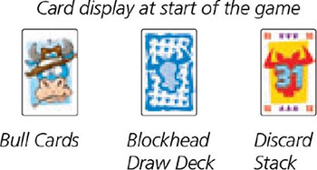 The bull cards also form a stack which is put on the other side of the blockhead draw deck, for when they are needed.