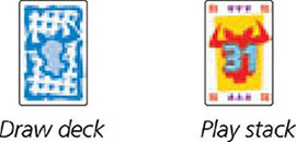 At the beginning of the game there is the draw deck and the first stack with the 31 as the top card.