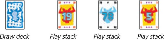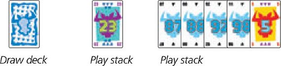 Remember: When a player is choosing one of the stacks, he is not allowed to see what and how many cards are in there. Besides the top card of each stack, the rest shouldn't be visible.
