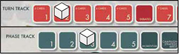 Throughout the game, the markers on the Turn and Phase Tracks should be advanced to reflect the current turn and phase.