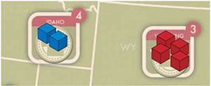 - Place the appropriate number of state support cubes in each state as indicated by candidate icons; each icon represents one point of starting Support.