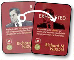 Candidate Cards are flipped over to their Exhausted side after being played. While flipped to its Exhausted side, a Candidate Card should be treated as out of play in the same manner as a card played as an Event. Candidate Cards may only be returned to their active face by play of specific Events.