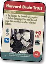 Reminder: Remember during the Debates to apply all effects of any Debate Event cards that are in the Persistent Events Card Stack on the board. Those cards can have a significant effect on the outcome of the Debates.
