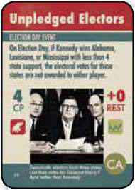 If the Unpledged Electors Event is in play, it is possible that one or more states that Kennedy is leading but not carrying will not be awarded to either player. This makes it possible for a player to win with fewer than 269 electoral votes, obviously, and it also introduces the possibility of a tie.