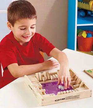 Example: If the player rolls a 5 on one die and a 3 on the other, she/he may turn over the 5 key and the 3 key OR she/he may add the 5 + 3 and flip only the 8 key.