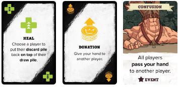 If you run out of cards in your hand and draw pile, you can't do anything until another player helps you out with a card like Heal, Donation, or Confusion... so be careful not to waste your cards!