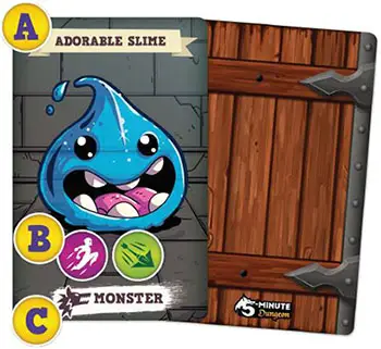 Each Door Card represents an obstacle or foe that your team must overcome. Door Cards have the following information on them: