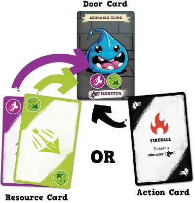 You can also defeat the card by playing certain Action Cards. One example is Fireball, which defeats Monsters.