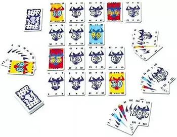Between the numbers, each card shows from one to seven bullheads. When a player has to pick up cards, each bullhead represents one minus point.