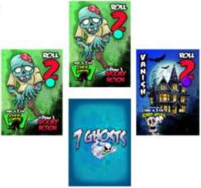 On each turn, a player declares which main deck card they are rolling for. These cards may be ghost cards (you need seven to win!), zombie cards, scary pumpkin cards, or haunted house cards.