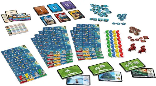 A new score pad is included in this box. It allows players to integrate Victory Points earned from Naval Conflicts, some Island cards, and those present on the Dockyard boards into the game's final scoring.
