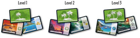 3 Sort the Island cards by level (1, 2, and 3). Shuffle each deck thus formed and place them, face-down, near the middle of the table.