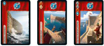 These cards allow the player to draw the top Island card from the deck of the indicated level (level 1/2/ 3 respectively) and put it in play (to the right of their Dockyard board). The player then benefits from its effect.