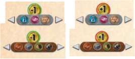 These 3 tiles allow each player to benefit once per turn a free resource from among those shown on the tile.