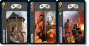 Example : During the Age I of a game, Tina puts the Residence card into play. At the end of that Age, Tina doesn't take part in the conflict resolution. Her two neighbors, Cyril and Kurt, compare their military forces and take the Conflict tokens as if their cities were neighboring.