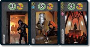 Example: the Lair card has just been played by Kurt. Each other player must pay 2 coins at the end of the current turn. Joan decides to pay the 2 coins: she hands them to the bank. Cyril only has one coin in his treasury but decides to pay it in order to only gain one Debt token. Tina has the required coins but decides to keep them for later in the game: she therefore takes 2 Debt tokens.