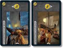 Example : Alex own a Market and a Clandestine Dock (East). He buys a Textile resource and a Stone resource from the neighboring to his right (East) : the Textile costs him 0 coins (1 coin rebate for the Market and 1 coin rebate for the Clandestine Dock), the stone costs him 2 coins. OR, the stone costs him 1 coin (1 coin rebate for the Clandestine Dock) and the textile costs him 1 coin (1 coin rebate for the Market).