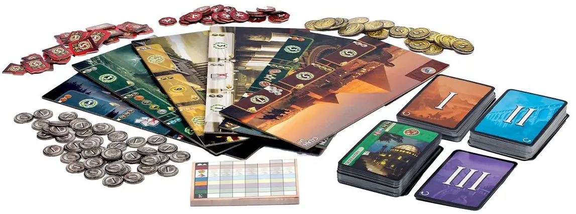 However, the resources required are all raw goods which can be difficult to fulfill if you are drafting a lot of manufactured goods to be able to play your Science cards. It can be worth a lot of points at the end, but will take careful planning to achieve. It is also important to carefully choose the card you sacrifice to your Wonder. The cards often become less valuable as the Age progresses because the best cards have been chosen already.