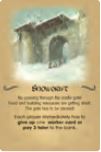 The innkeeper doesn't have to stay in the village tavern. If a player plays the trader, bricklayer, or stonemason, he can remove his innkeeper and use him as a helper in a new place. This winter card stays in the game, and new talers are put on the card again until a player places a helper as an innkeeper.