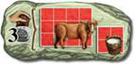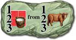 If a good costs silver, the price is printed below a purse icon at the left of the action space. 1 cattle and 1 milk cost a total of 3 silver.