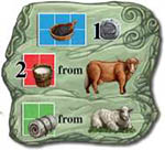 Here, you receive 1 spices and 1 silver. Additionally, you receive 2 milk if you have at least 1 cattle, and 1 wool if you have at least 1 sheep.