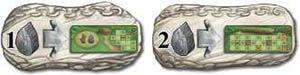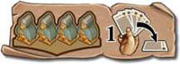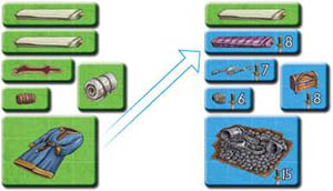 Here, you receive 4 silver. Additionally, you may exchange a green "wool" tile for a "robe" tile, and/or a blue "silverware" tile for a "jewelry" tile.