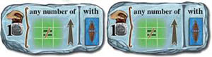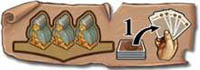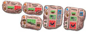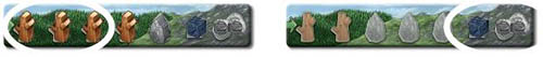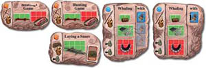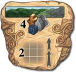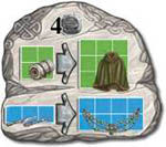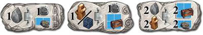 Let us talk a little bit about the luck factor in this game. Rolling dice is frowned upon in development games-with good reason. In this game, failure is designed such that it is only marginally worse than, for example, taking 2 stone (compared to stone and long sword) or 2 wood (see failure in the next section) from a mountain strip. When you fail, your next roll is more likely to succeed. Bad rolls do not prevent success, they just delay it a little. For me, it is an essential part of the game to provide that feeling of adventure.
