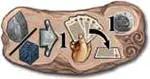 Each stone and "long sword" weapon card you spend increases your die roll by 1 (even above 8). This modified value is considered your "battle result".
