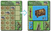 The home board has three additional spaces at the top right, so that you can place bigger tiles like the treasure chest during the end game.