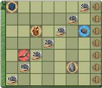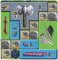 Note that there might be spaces in the center of an exploration board that you are not allowed to cover with goods, like the "5" on Bear Island.