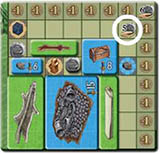 Then turn a new mountain strip face up and place the depicted goods on it. (This way there can be more face-up mountain strips than at the start of the game).