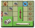 The following table shows how you should organize the goods tiles in the goods boxes. The goods boxes have alternating small and large compartments. In the first goods box, the small compartments are reserved for goods of the size of peas and beans, and the large ones are reserved for goods of the size of flax and grain.