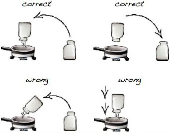 To season a dish, the player takes the dispenser of an appropriate color and tries to get the condiments into his or her pan. While seasoning, the dispenser has to be placed over the pan in a single movement with its opening down and then returned back again.