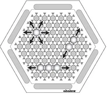 ![]() An "In-line" Move: Marbles are moved as a column into a free space |