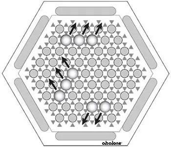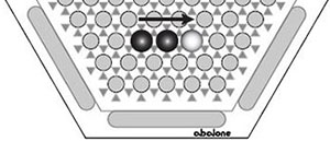 ![]() A 'Side step' move: Marbles are moved sideways into adjacent free spaces. A 'Side step' move can not be used to push an opponents single marble, or column. |