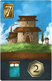 Some buildings give bonus village points. In many cases, the points are simply listed at the bottom of the card. The card below would give the player 2 bonus village points.