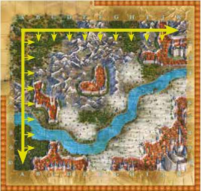 Important: You may move adventurers as far southwards (= down) or eastwards (= right) as possible. But you must not move northwards (= up) or westwards (= left)!