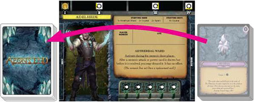 Now that Abby and Bob have the game set up, they start the game by drawing the top card of the turn order deck. The Player 1 turn order card is drawn, so Abby will take the first turn.