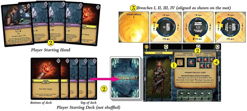 3 Each player receives one of each type of breach shown on their mat (I-IV as listed). Players arrange their breaches as indicated on their player mat.