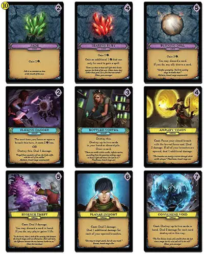 - 87 gem -, 86 spell - ,30 relic cards: used by the players to enhance their decks.