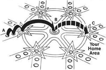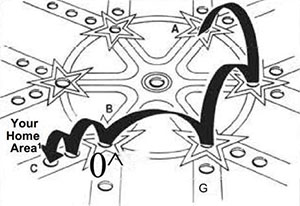 Exit the Center hole onto the Star hole closest to the path that leads to your HOME area. (You can also exit to any other Star hole if you wish).