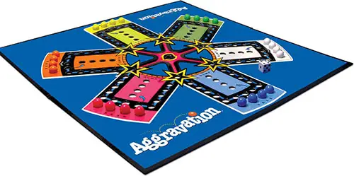 Be first to move all 4 of your marbles around the board from BASE to HOME. You don't have to "aggravate" the other players to win-but it sure helps!