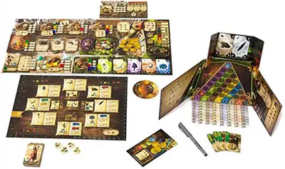 The types of ingredients and favor cards in your hand, the types of seals you play, the ingredients in your experiments, and your deductions from results are always kept secret from the other players. This information can be hidden behind your laboratory screen.