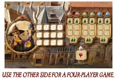 This side of the board is for a four-player game. The setup for two or three players is the same, except you use the other side of the board.