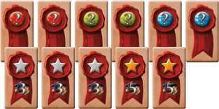 If you successfully exhibit 2 different signs of the same color during the exhibition, then you have demonstrated mastery of that color. Score 2 points of reputation. (More than one player can score this bonus).