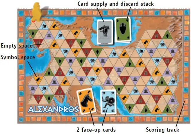 If there are several empty spaces showing the symbol matching that of the card chosen that are the same distance from Alexander, the player may choose which among them to move Alexander to.