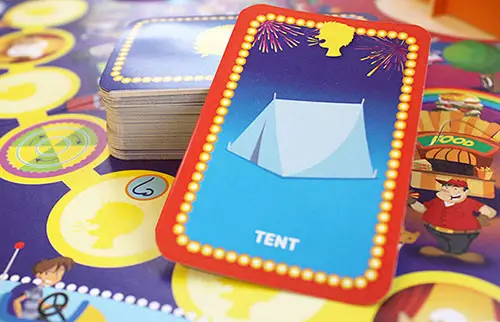 The game ends when one of the players reaches the big top at the end of the track. That player is the winner! If two or more players reach the big top at the end of the same turn, they share the victory!