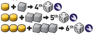 Example : At the beginning of your turn there is a 1 and a 4 docked at the Lunar Mine. You roll a 3, 4, and 6. You cannot dock the 3 at the Lunar Mine because it is less than the 4 already docked there, but you can dock both your 4 and your 6.