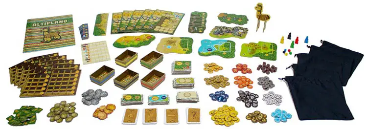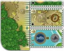 - Put all 36 food tiles and 50 coins in the center of the plateau (i.e., between all of the location tiles). This is the supply.