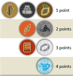 Important: Unlike many games in which you sell or otherwise give up resources, in this game all goods and food tiles always remain in your possession. Only coins are spent.